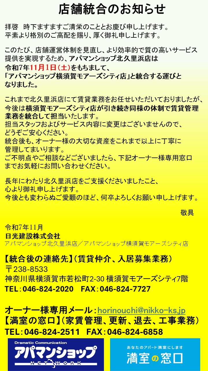 日光建設株式会社管理センターが、「満室の窓口 横須賀店」として
