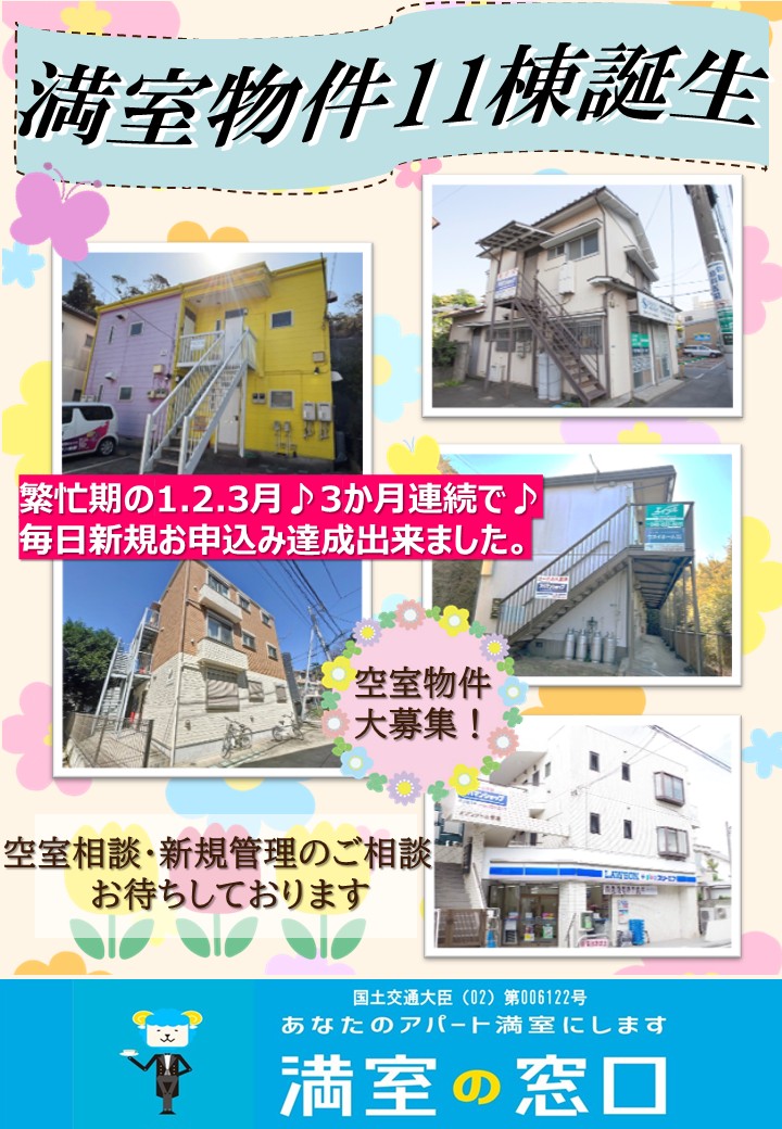 現在も当社では空室物件の募集を継続して行っており、